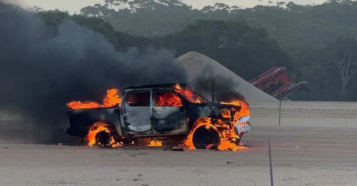The incident occurred on Friday evening on a section of beach north of the township of Salt Ash. The ute had a dual LPG and petrol fuel system, and flames linked to the LPG tank reportedly spread into the cab area.